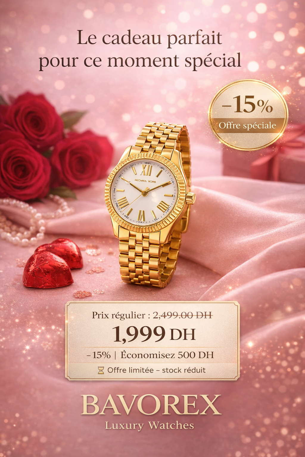 • Montre femme au design chic et raffiné, pensée pour sublimer votre look au quotidien comme en soirée.