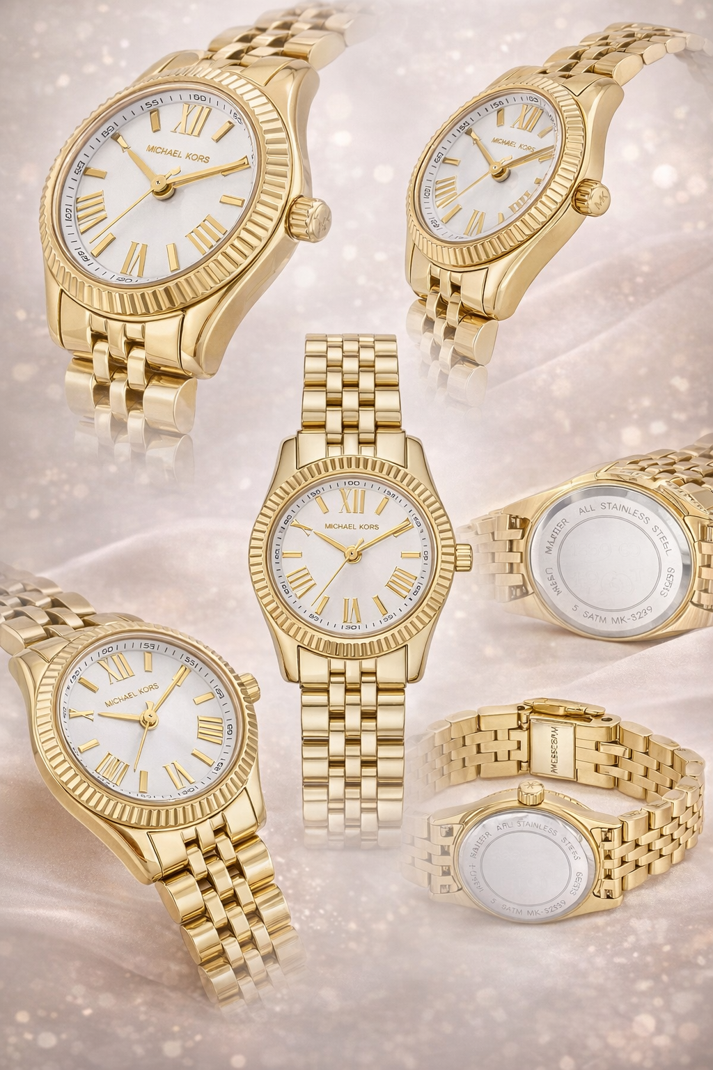 • Bracelet et boîtier en acier inoxydable doré qui apportent une touche sophistiquée et haut-de-gamme.